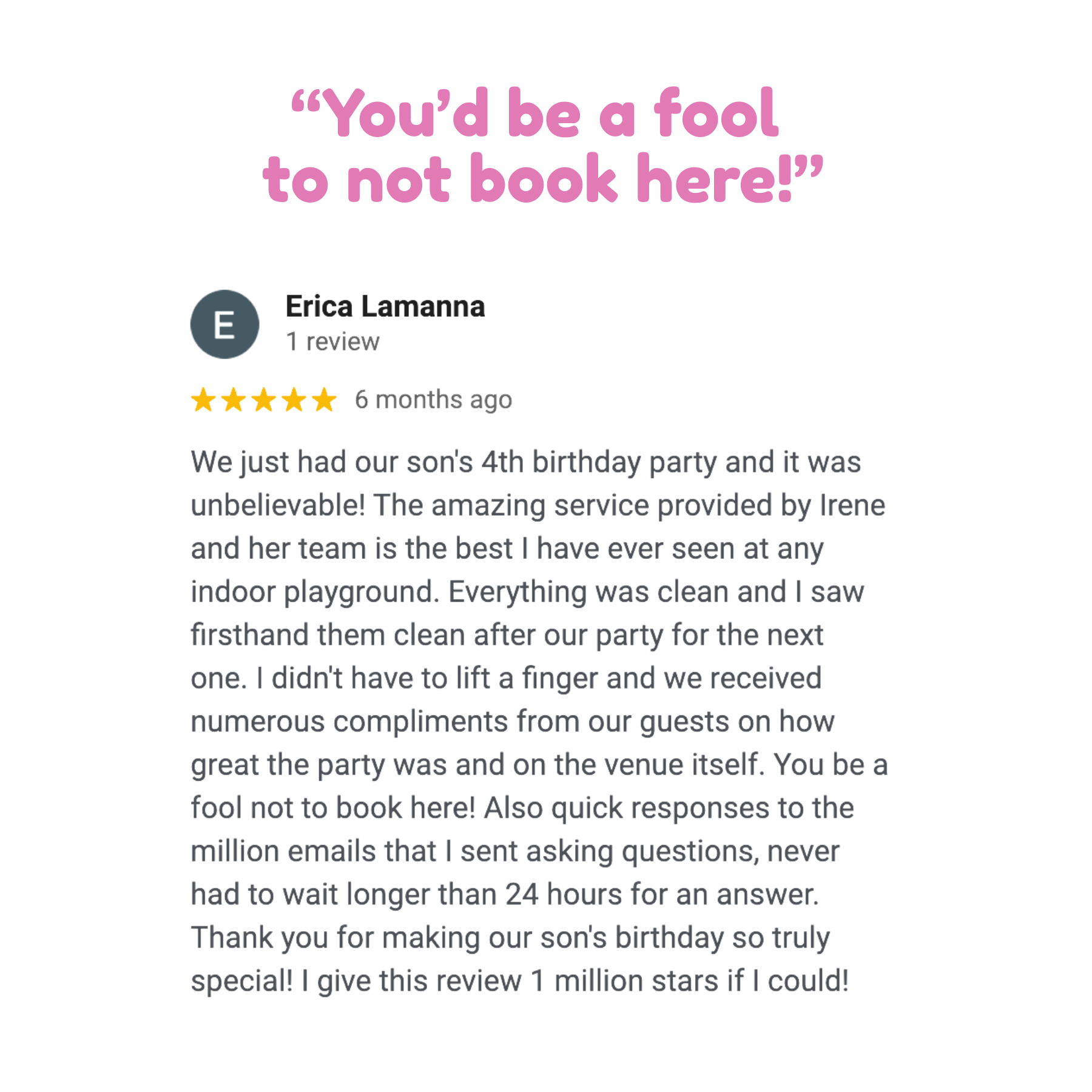Voted #1 Party Centre in the GTA. We are at your service! Offering weekday Drop-In Play, Parent Relief, and Full-Service Birthday Parties every weekend.